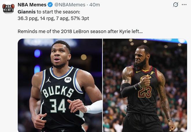 在字母哥展现出如此统治力的同时,也让部分美媒看到了强大字母哥与薄弱身旁配置的巨大落差,直言本赛季的字母哥让人想起了18年欧文离开后的詹姆斯。
