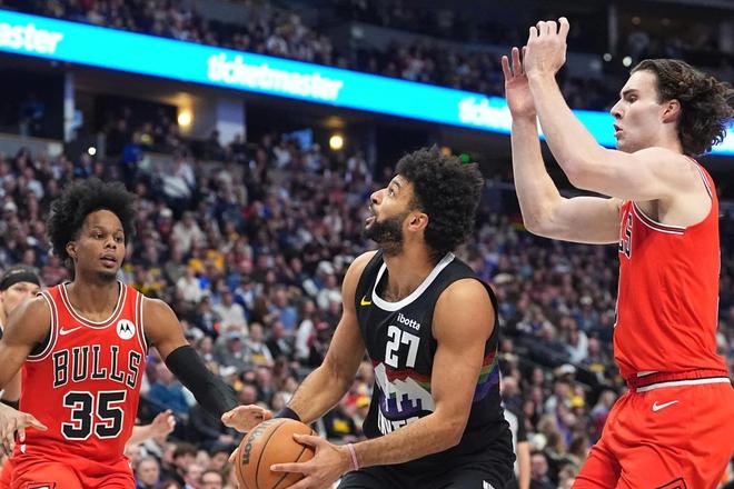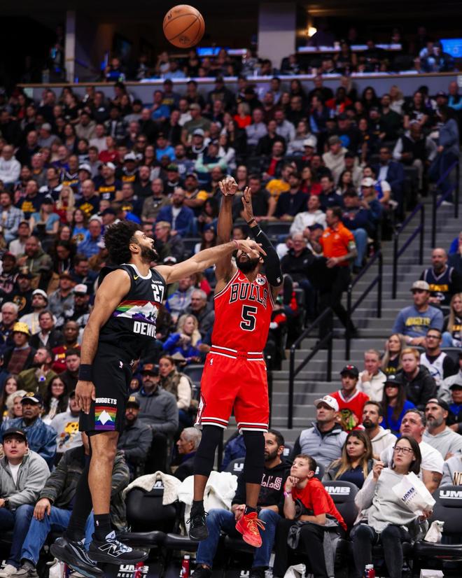 掘金VS公牛北京时间11月18日,NBA常规赛继续火热进行。掘金坐镇主场与公牛展开对决,两大超人气球队的较量,可谓是看点十足。此役,布劳恩、斯特劳瑟伤停,丹佛调整了阵容,首发五虎是