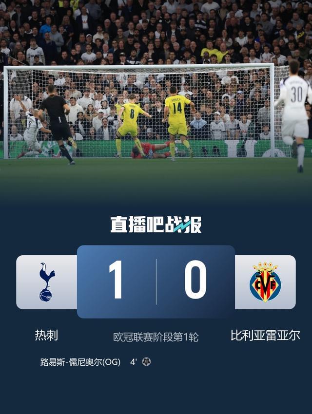 贝里瓦尔造路易斯-儒尼奥尔离谱黄油手乌龙,热刺1-0比利亚雷亚尔,收获开门红。