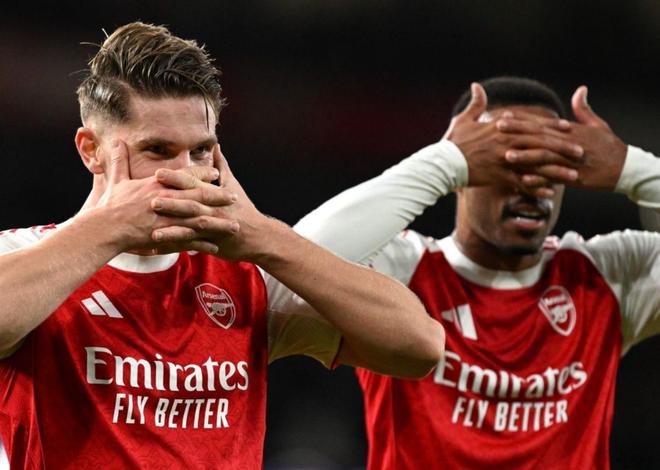 第70分钟,阿森纳开出角球,加布里埃尔后点头球回做,约克雷斯在门前用大腿将球挡进球门。短短的13分钟,阿森纳连进4球,彻底打崩了马竞。