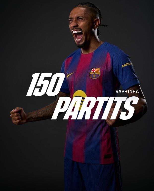 直播吧9月22日宣 西甲第5轮比赛,巴萨在主场迎战赫塔费。本场比赛,拉菲尼亚迎来红蓝军团里程碑时刻,因为这是他代表球队第150次出场。