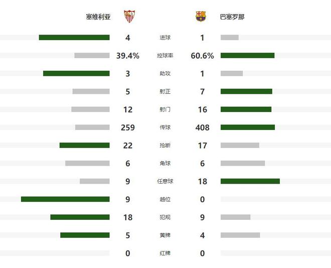 虽然之后塞维利亚之后吃到了红牌,不过第96分钟,他们再次通过一次快速反击机会制造进球,这几乎跟之前是如出一辙的。巴塞罗那退防的又只剩下了三个后卫人选,不管是在后腰的保护方面,还是在其他队友跟进方面都不够,就此1:4的比分正式落成的。