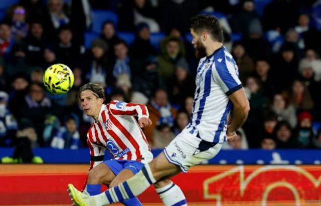 西甲第18轮,马竞客场1比1战平皇家社会。第50分钟,朱利亚诺·西蒙尼右路传中,瑟洛特头球破门,马竞1比0领先。第55分钟,久保建英右路横传,格德斯后点得球,劲射破门,皇家社会将比分扳平。马竞19轮过后积38分,排名第4。