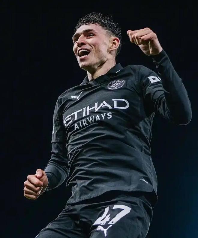 第45分钟,福登一脚世界波把比分扩大到3-0。