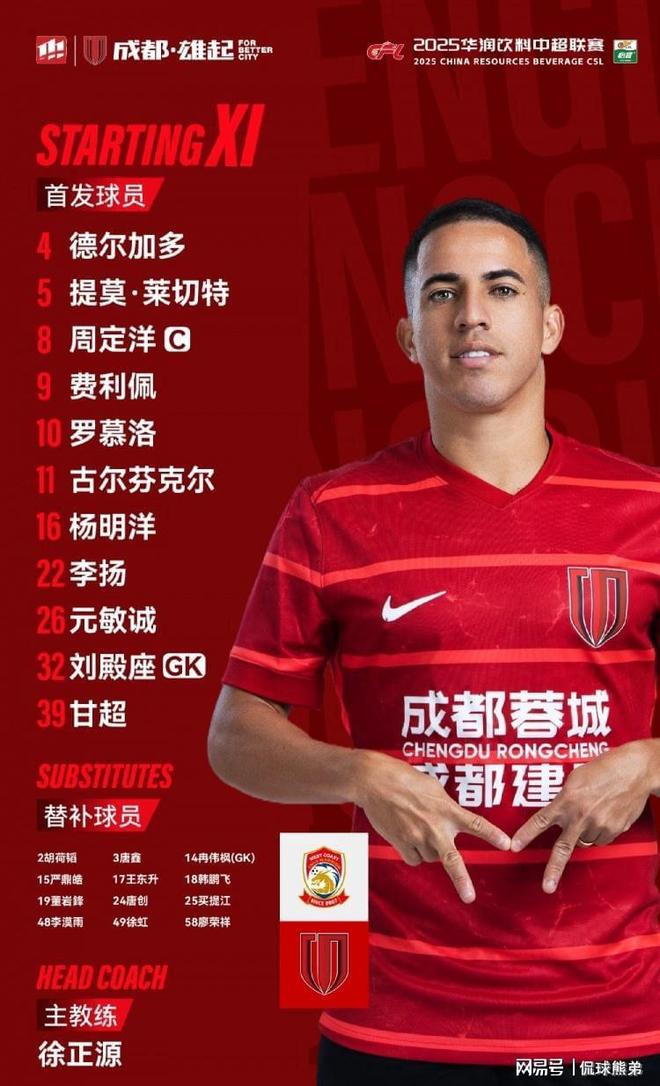 第68分钟,罗慕洛角球助攻费利佩头球破门,帮助成都蓉城1-2扳回一城。最后时刻,费利佩完成2-2绝平,成都蓉城还是爆冷丢分。