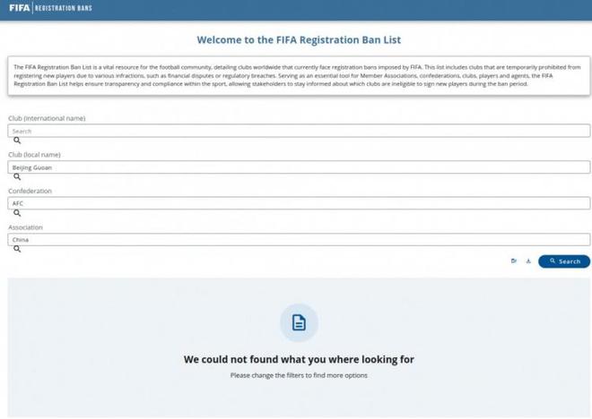 不过北京国安的利好不断!这不,前段时间也就是9月底的时候,国际足联注册禁令披露系统还新增了一条北京国安的禁令。该禁令表示在问题解决前禁止国安转会和注册新球员。刚刚,有人再去查看,该禁令已经消失(下图)。这意味着北京国安可以重新引援,以及解除一条准入障碍。